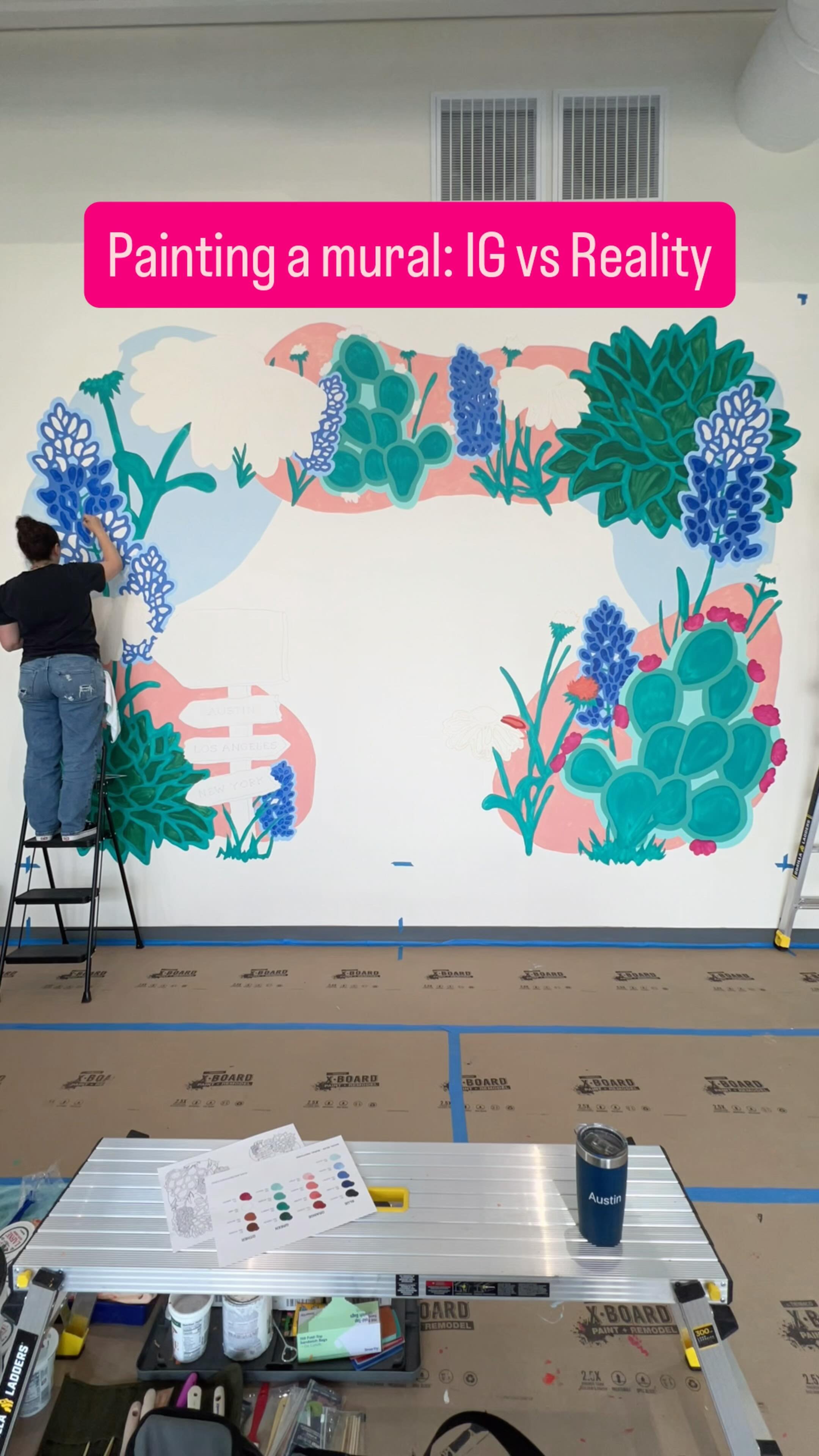 Using the final art, I’ll secure the paint, supplies, and any special equipment required. Then it’s time for the fun part - showing up in person to prepare the space and start painting!